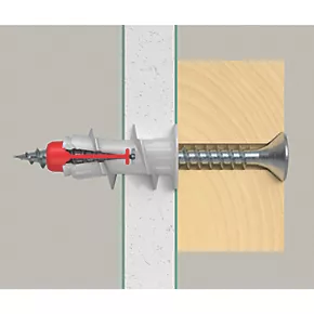 Allows quick and easy installation into gypsum, plaster and fibreboards. Metal tip for better cutting characteristics and heat resistance. Can be used with wood, metal and chipboard screws. Ideal for mirrors, curtain rods, pictures and smoke detectors.
