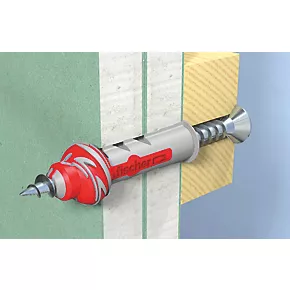Universal wall plug made from 2-component materials providing better load capacities in both solid and hollow building materials. With flexibility for optimum fix, either by expanding, folding or knotting, dependent on the substrate used. Features a narrow plug rim to prevent slipping in the drill hole and allows for positioned and push-through installation. Serrated profile to prevent plug rotation and a short plug length to reduce drilling time. With good plug feedback so its known when the plug is installed correctly. Suitable for concrete, solid brick, perforated brick, plasterboard, hollow block etc.