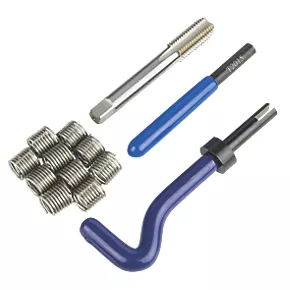 Heli-Coil inserts and thread repair kits are designed to let you carry out a fast and efficient repair to damaged threads. Eco Kit is a quick and economical solution to any type of thread repair. Inserts are made from high grade 18-8 helically wound stainless steel wire. Due to the exact tolerances, the repaired thread will be stronger than the original. Contains all the necessary tools and inserts with step-by-step instructions. Supplied with a HSS tap suitable to cut most materials.