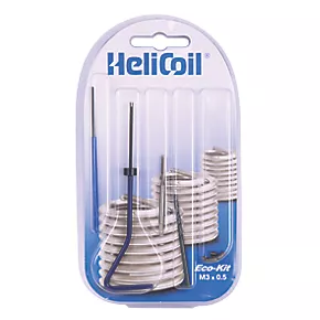 Heli-Coil inserts and thread repair kits are designed to let you carry out a fast and efficient repair to damaged threads. Eco Kit is a quick and economical solution to any type of thread repair. Inserts are made from high grade 18-8 helically wound stainless steel wire. Due to the exact tolerances, the repaired thread will be stronger than the original. Contains all the necessary tools and inserts with step-by-step instructions. Supplied with a HSS tap suitable to cut most materials.
