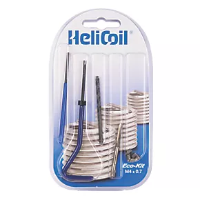 Heli-Coil inserts and thread repair kits are designed to let you carry out a fast and efficient repair to damaged threads. Eco Kit is a quick and economical solution to any type of thread repair. Inserts are made from high grade 18-8 helically wound stainless steel wire. Due to the exact tolerances, the repaired thread will be stronger than the original. Contains all the necessary tools and inserts with step-by-step instructions. Supplied with a HSS tap suitable to cut most materials.