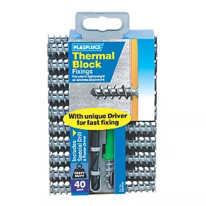 Nylon thermal block fixings. Includes drill and driver for efficient fixing.